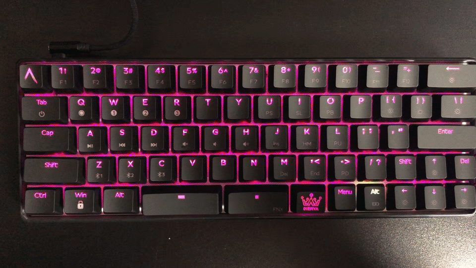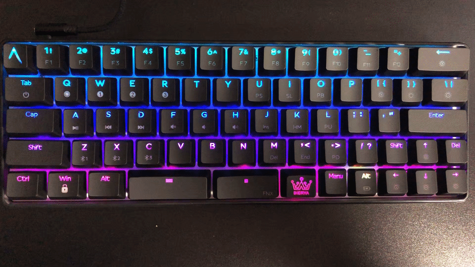 - 일반적인 키보드의 한/영 키가 위치할 곳에 "Fn"기능을 담당하는 키가 있고, 그 옆에 Menu 키, 그리고 그 옆에 한/영 동작을 하는 키(Alt)가 있음