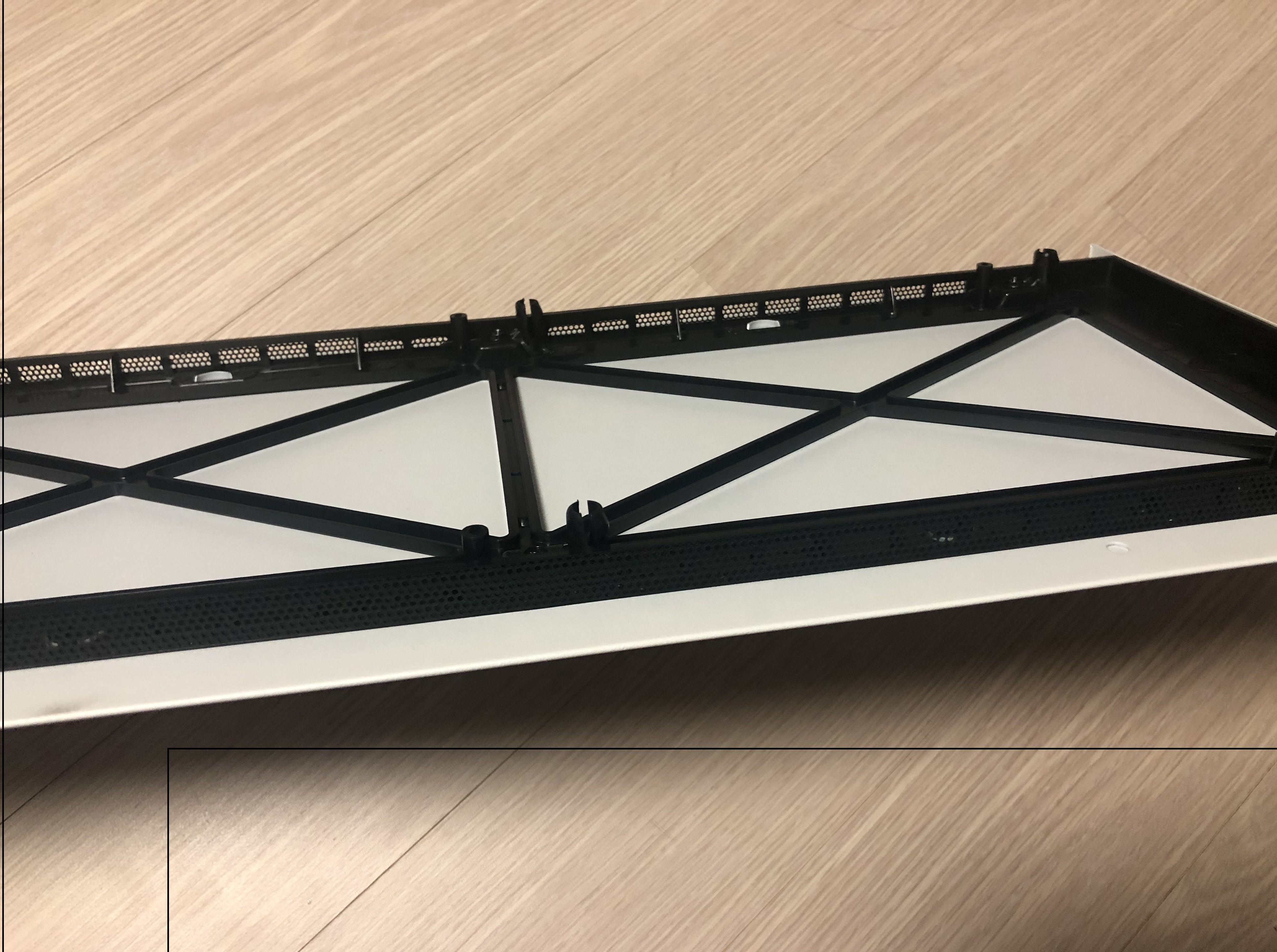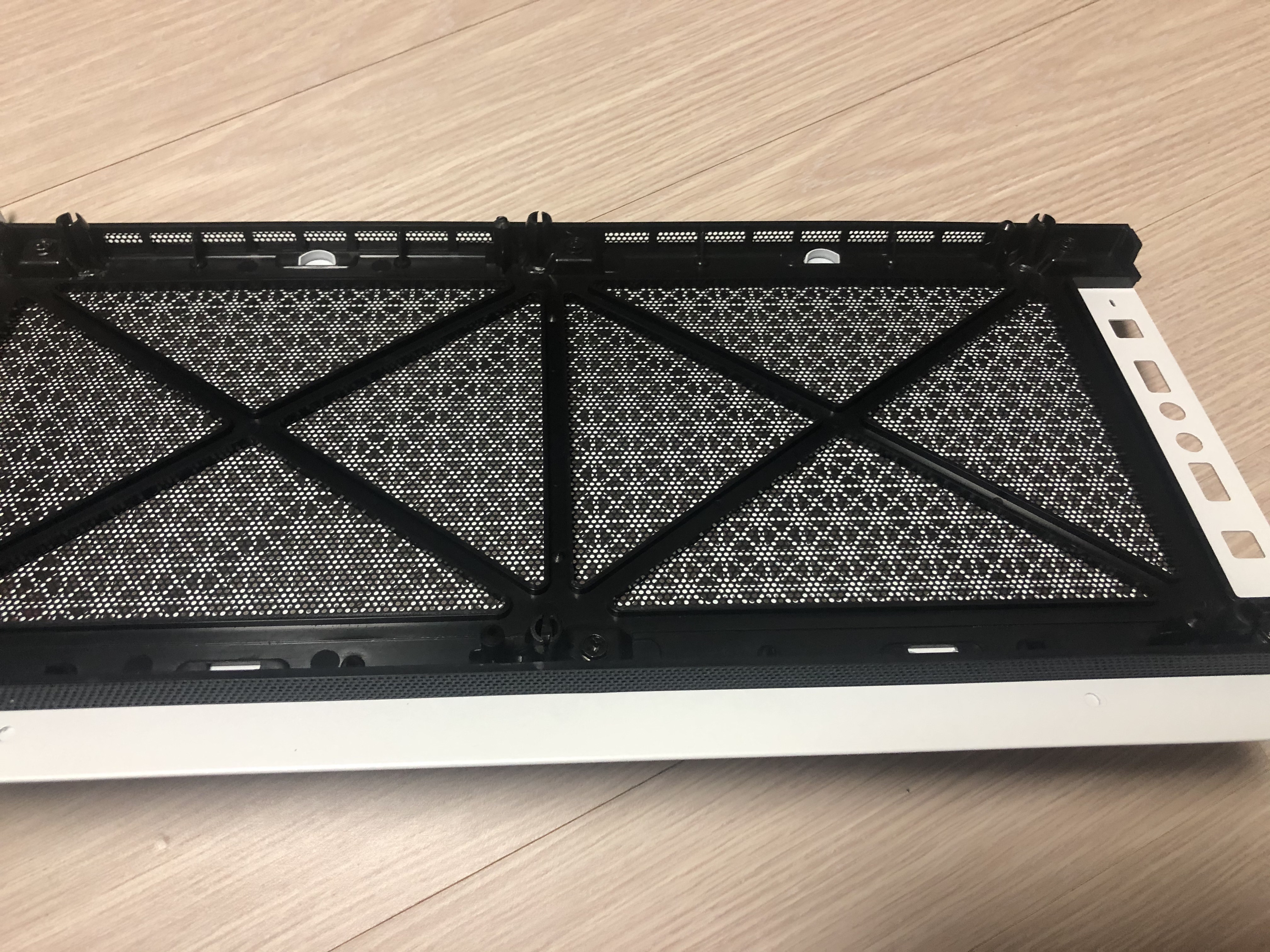 상판에는 먼지필터가 있고 양측면을 본체와 이격시키고 타공처리해서 공기가 드나들 수 있도록 되어있습니다. 전면패널은 금속재질의 판으로 되어있습니다. 상판과 마찬가지로 측면이 본체와 이격되어 타공처리되어 있기 때문에 전면이 판으로 막혀 있는대신 측면으로 공기가 통하도록 만들었습니다. 당연하게도 전면이 매쉬로 된것보단 쿨링효율이 떨어지겠지만 개인적으로 극강의 쿨링을 추구하진 않기 때문에 괜찮아보입니다.